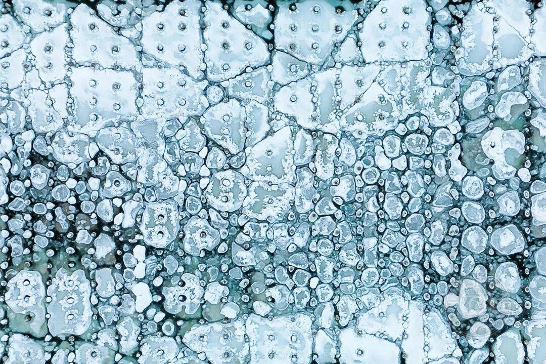 从高空俯瞰,静默的鸭群划过冰封的寂静与开阔水域之间脆弱的边界。这幅摄于隆冬时节的影像,捕捉了自然优雅的几何图景——生命本能地沿着冰层流动的边缘自发排列。