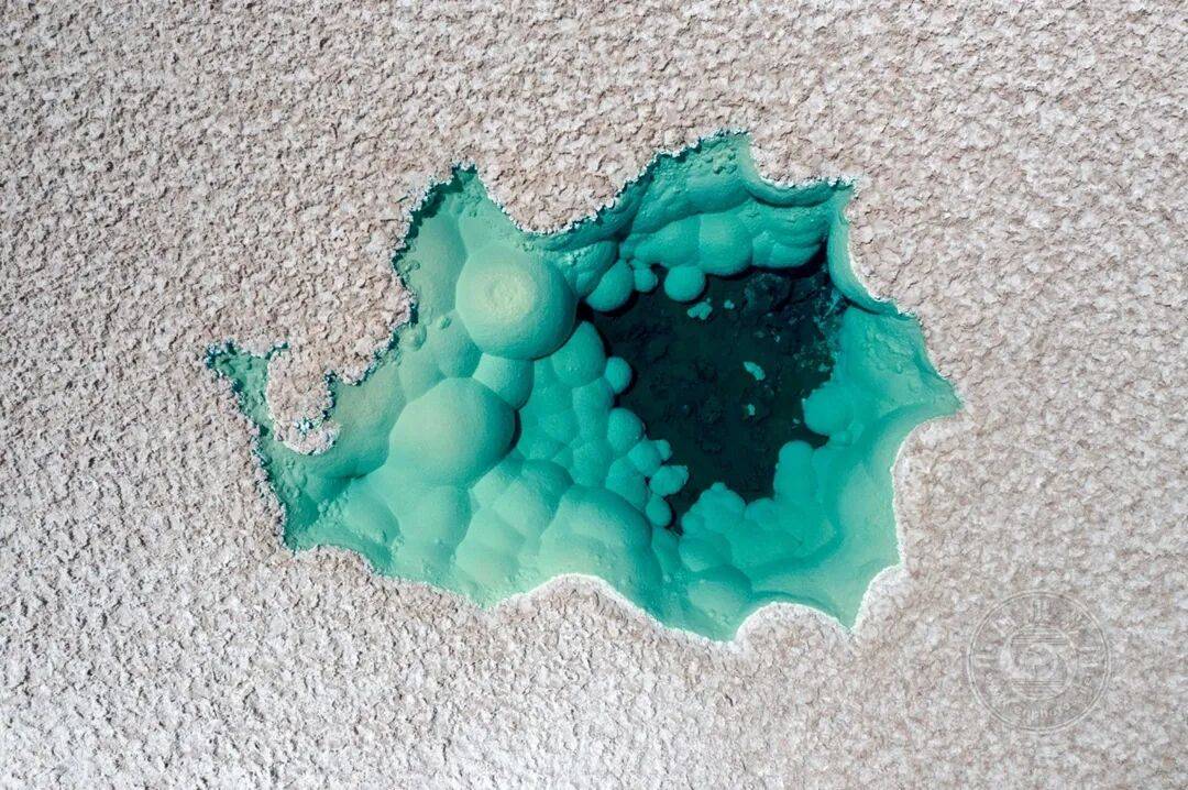 在智利北部众多高海拔盐湖中,一个小巧而浅浅的湖泊宛如碧绿的眼睛。清澈见底的水面下,簇簇圆润的白色盐晶如盐泡般浮现。这些天然构造赋予湖泊独特的色彩与质感,营造出超现实的奇幻景象。