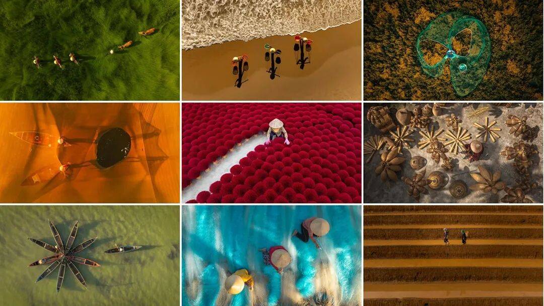 该系列通过航拍视角探索越南传统职业,其中许多行业已传承逾五百载。每幅航拍照片不仅展现了这些古老手工艺的精妙纹样与细节,更突显了定义其精髓的鲜明主导色彩。本系列颂扬色彩、文化与工艺的交融,为越南文化遗产提供了全新视角。
