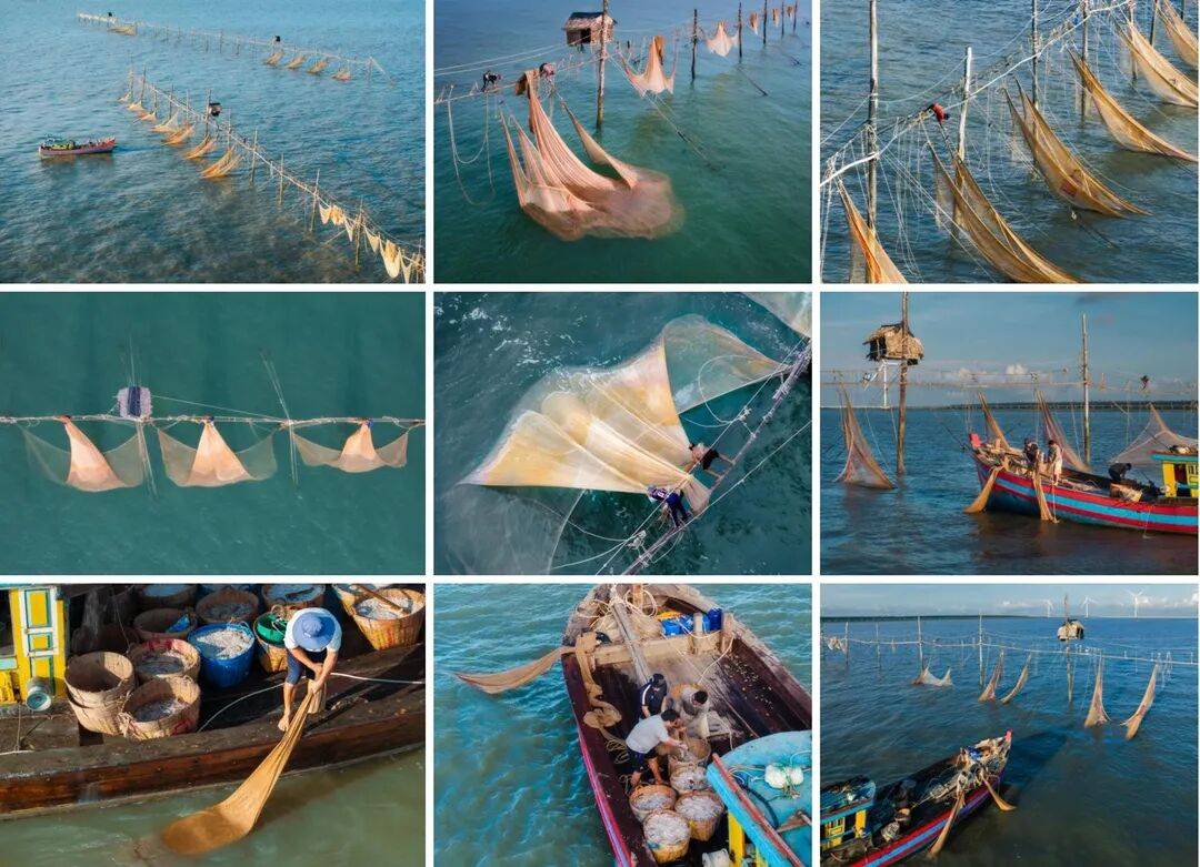 底网捕鱼业,即“近海底网捕捞”,在茶荣省已有数百年的历史,尤其盛行于桥港和缘海等沿海地区。这项传统职业是当地渔民的主要生计来源,他们依靠它捕捞珍贵的海洋资源。渔民们需掌握名为“bạn chòi”的精湛技艺——类似于绳索上的杂技动作,这是操控渔网的关键技能。尽管远洋底网捕鱼充满艰辛与危险,这一职业仍代代相传。