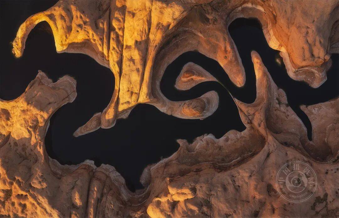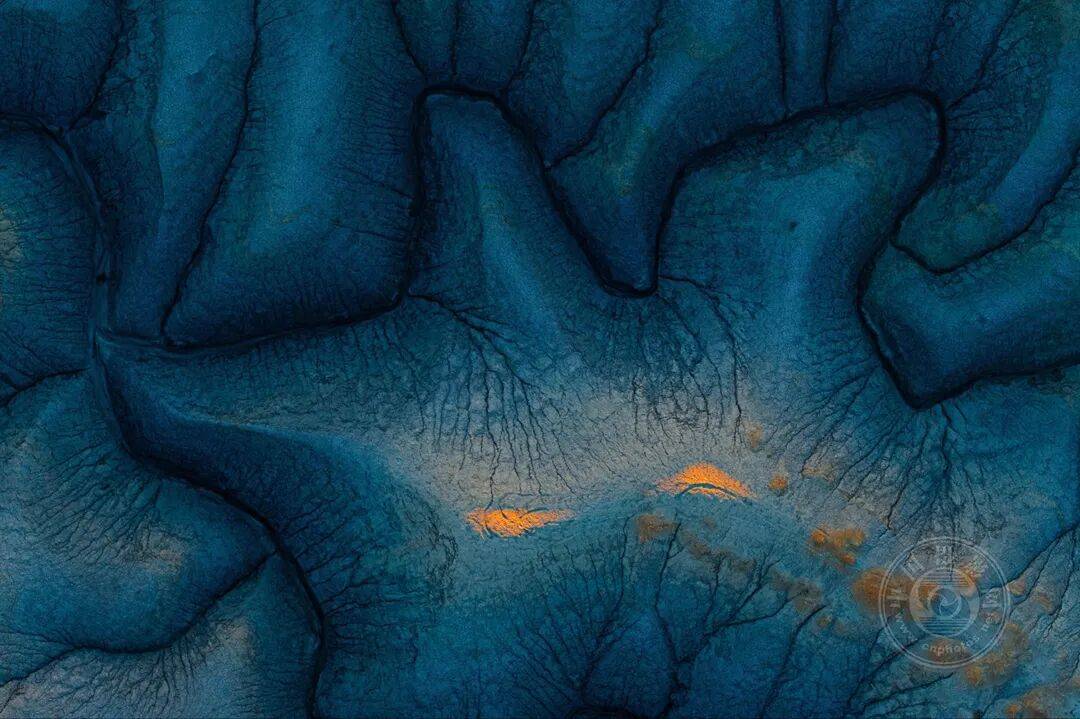 土耳其纳利汉独特的荒漠地貌从空中俯瞰呈现奇特纹理。阿曼德在该地区操控无人机飞行时,发现了这片奇异的“眼球”状图案,并拍摄了其周边区域的俯视全景图,最终呈现出这张令人惊叹的龙形或恐龙面孔轮廓。